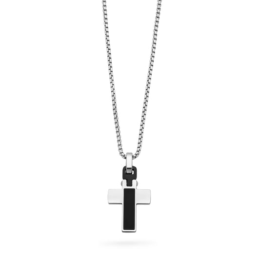 Stainless Steel Cross Pendant with Black Detail and Chain