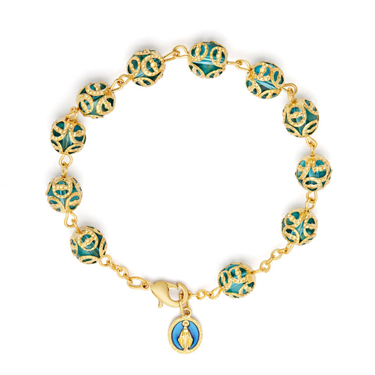 Blue Lume Rosary Bracelet with Miraculous Virgin Medal