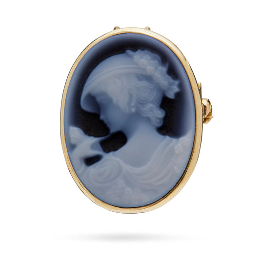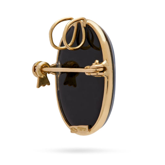 Oval Yellow Gold Brooch and Pendant With Black Agate Cameo Portraying a Woman
