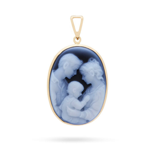 Oval Yellow Gold Pendant With Black Agate Cameo Portraying the Holy Family