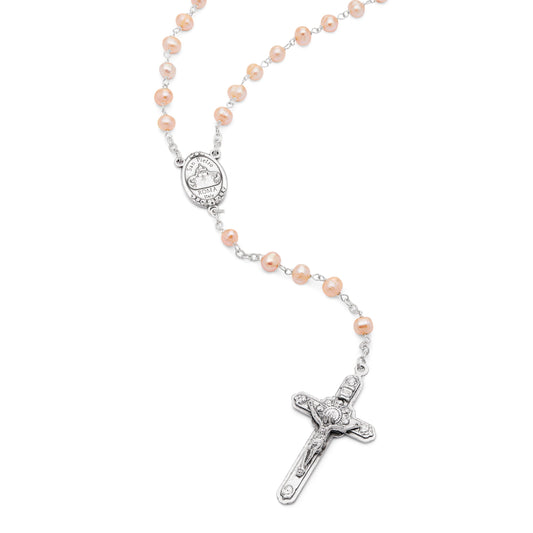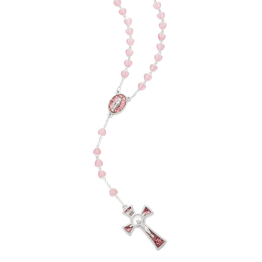 Pink Cat's Eyes Stone Rosary Small Hearts Beads