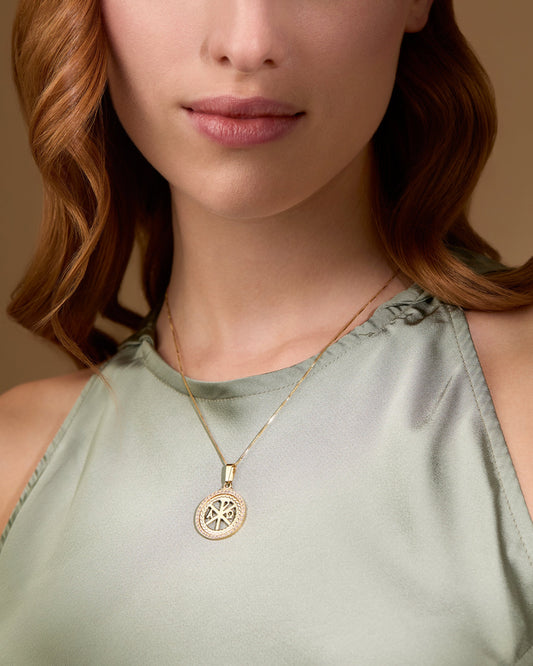 Yellow gold Peace Cross medal with zirconia crystal frame
