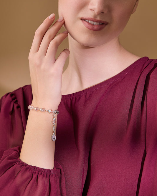 Rosary Bracelet with Balloon-shaped Light Pink Crystal Beads