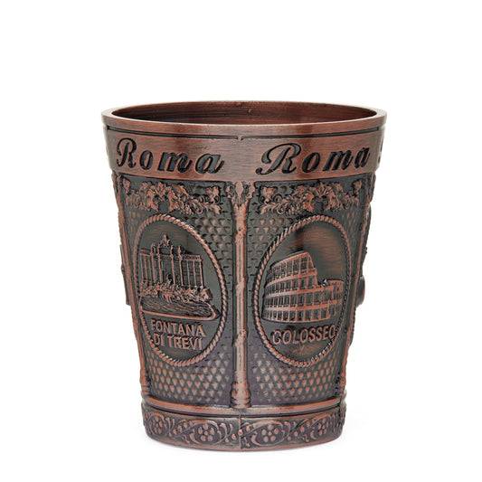 Bronze-toned Metal Souvenir Shot Glass featuring St. Peter's Basilica and Colosseum
