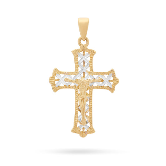 Yellow Gold Crucifix Pendant With Raised Cross and Modern Style White Gold Corpus