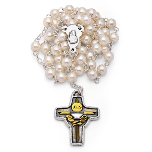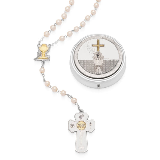 First Communion Rosary with the Chalice center Medal