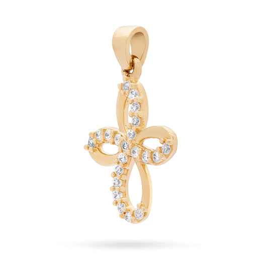 Yellow Gold Bow Cross Pendant With Cubic Zirconia