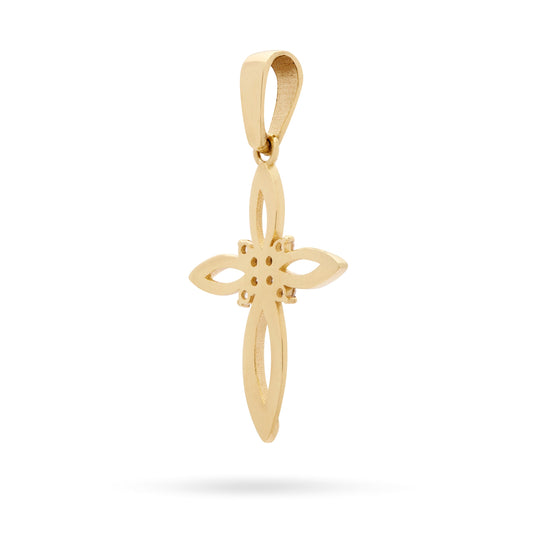 Yellow Gold Hollow Flower Cross Pendant With Cubic Zirconia in the Center
