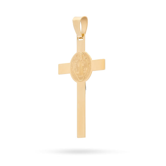 Yellow Gold Flat St. Benedict Crucifix Pendant With White Gold Corpus