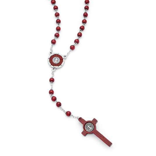 St. Benedict Rosary Bracelet in olive wood beads with enamel cross and crucifix
