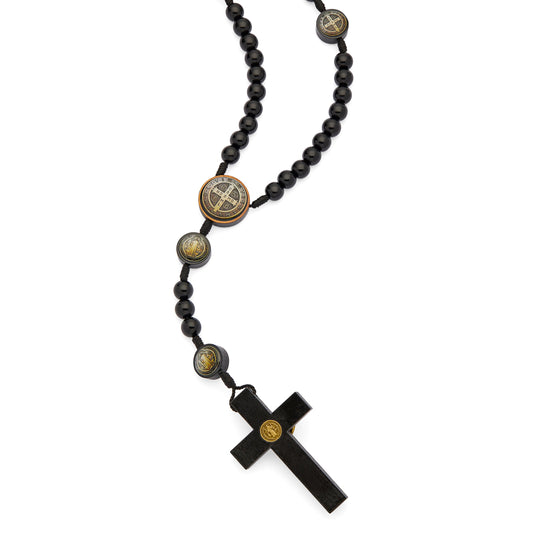 Saint Benedict Rosary in Black Wood with Bronze-Tone Metal Details
