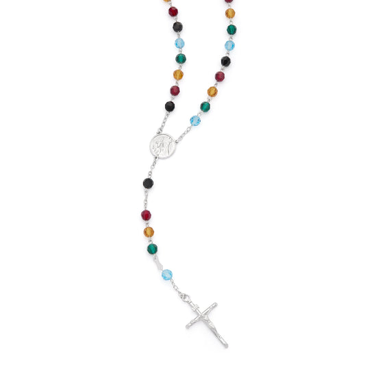Sterling Silver Rosary with Multicolor Rhinestone Beads