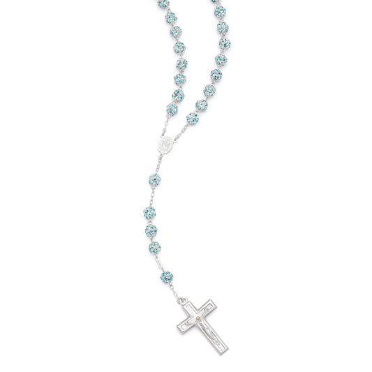 Sterling Silver Rosary with Light Blue Rhinestone Beads