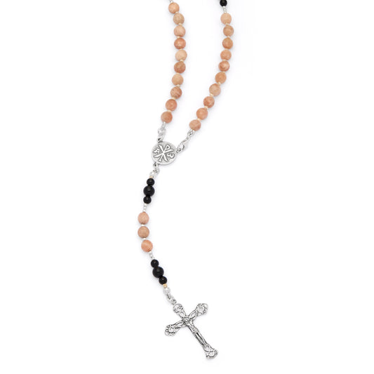 Sterling Silver Rosary with Moonstone and Black Onyx Beads