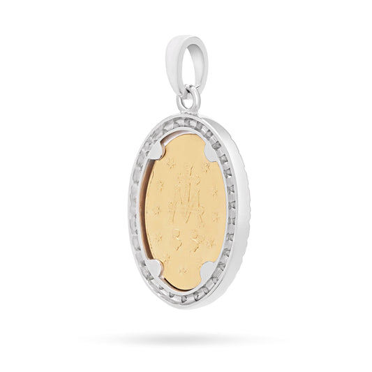 Yellow and White Gold Miraculous Medal with Cubic Zirconia