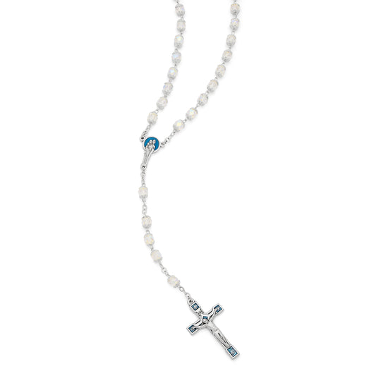 Holy Family Rosary Beads in Transparent Faceted Crystal