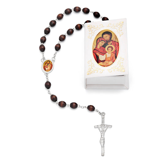Holy Family Brown Rosary Case with Wood Rosary