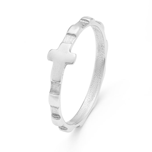 Sterling Silver Rosary Ring with Flat Cross And Beads