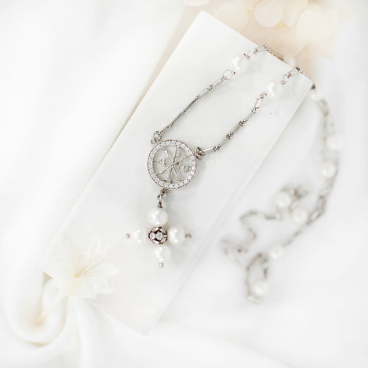 Sterling Silver Decade Rosary Swarovski Crystal and Glass Pearl