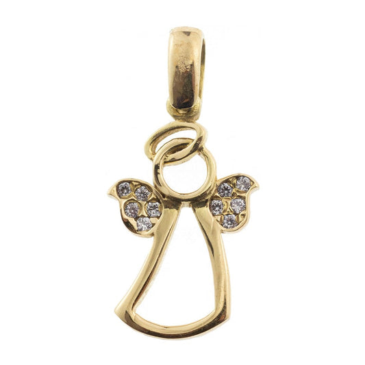 Yellow Gold Angel-shaped Pendant With Cubic Zirconia Details