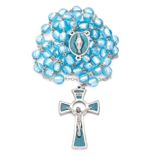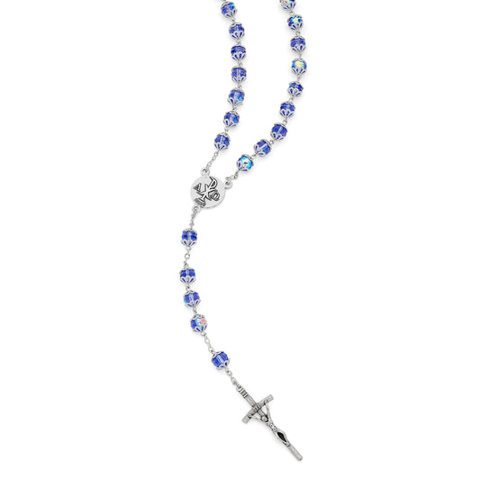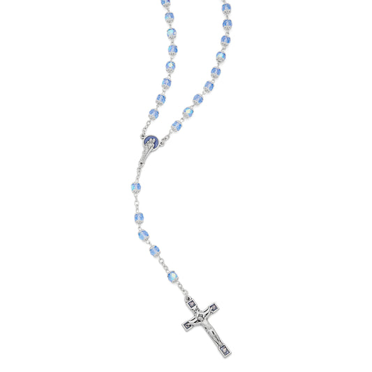 Sterling Silver Rosary with Light Blue Rhinestone Beads