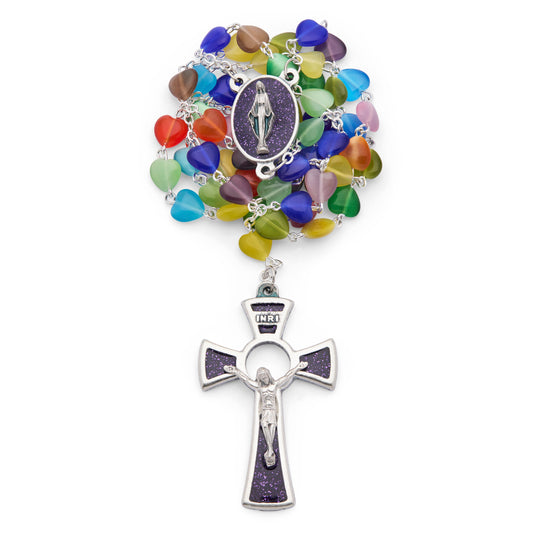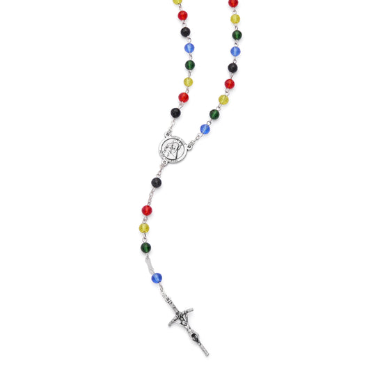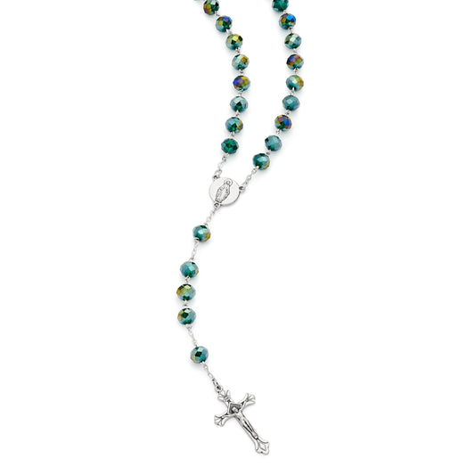 Sterling Silver Rosary with Multicolor Rhinestone Beads