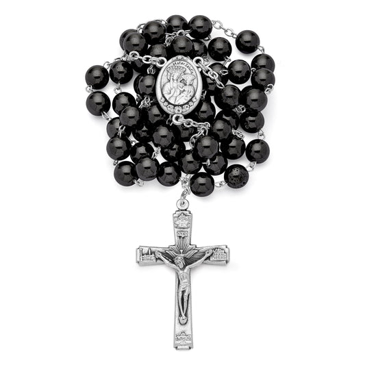 Sterling Silver Rosary with Moonstone and Black Onyx Beads