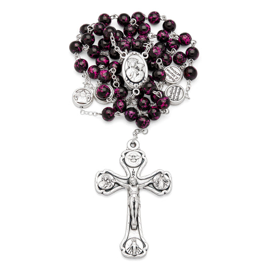Sterling Silver Rosary with Amethyst, Mother-of-pearl and Indian Agate Beads