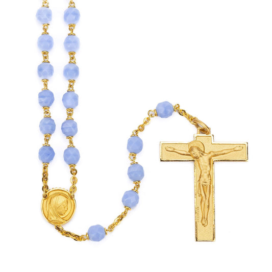 Sterling Silver Rosary with Light Blue Beads