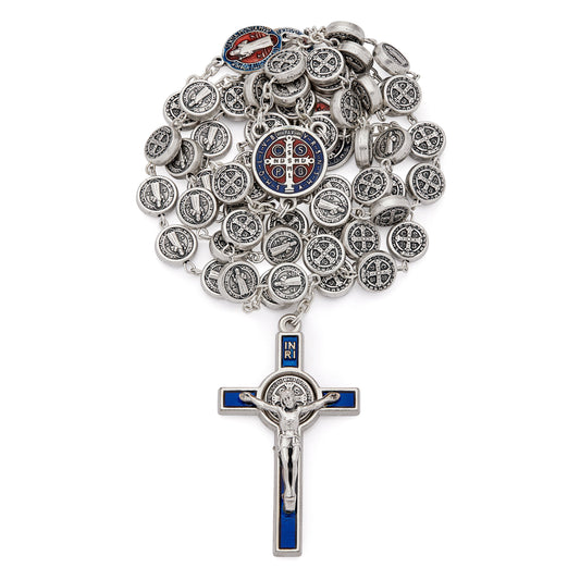 Saint Benedict Blue and Red Crystals Beads Rosary
