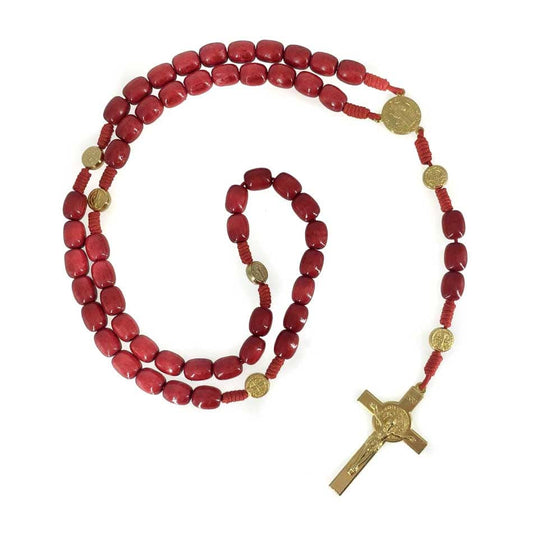 Red Enameled St. Benedict Rosary Case With Rose-shaped Beads Rosary
