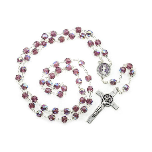 Saint Benedict Faceted Crystal Five Decades Beads Traditional Rosary