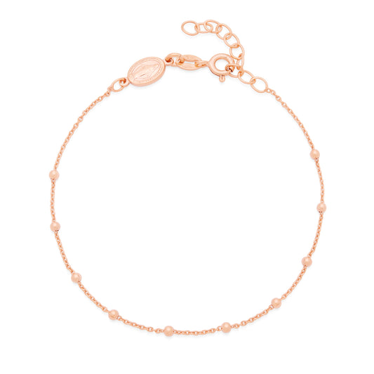 Rose Gold-plated Sterling Silver Rosary Bracelet with Miraculous Medal