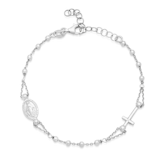 Sterling Silver Rosary Bracelet with Miraculous Medal and Final Cross Pendant