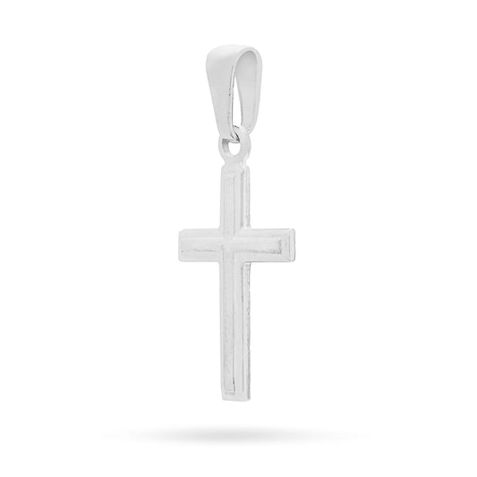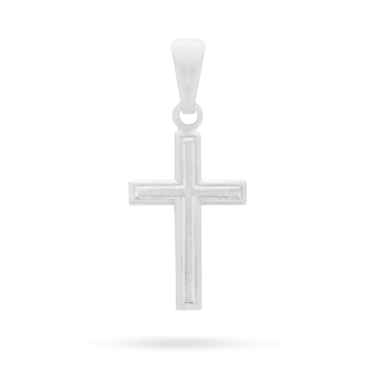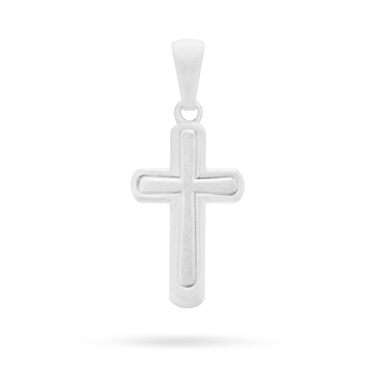 Sterling Silver Cross Pendant With Satin Interior and Rounded Corners