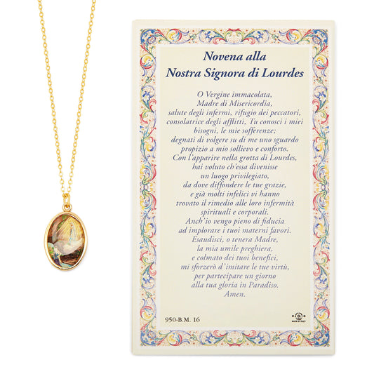 Holy Card Picture with Medal and Chain of Our Lady Of Lourdes
