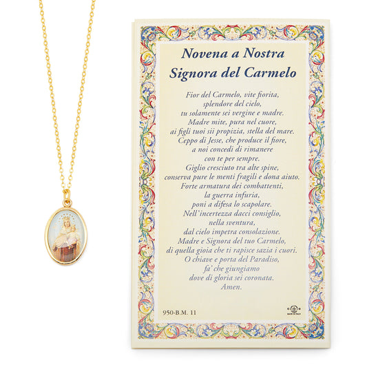 Our Lady of Mount Carmel Holy Card and Medal with the Chain