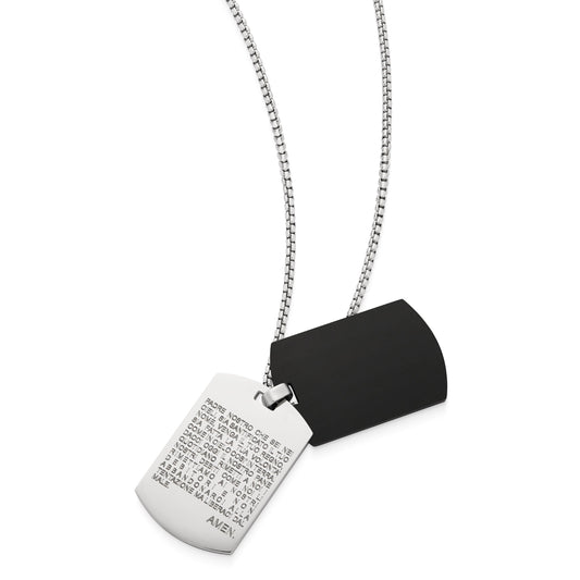 Stainless Steel Double Tag Pendant with Our Father and Chain
