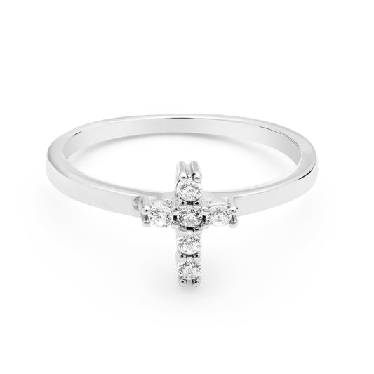 Sterling Silver Adjustable Ring With Two Cubic Zirconia Crosses