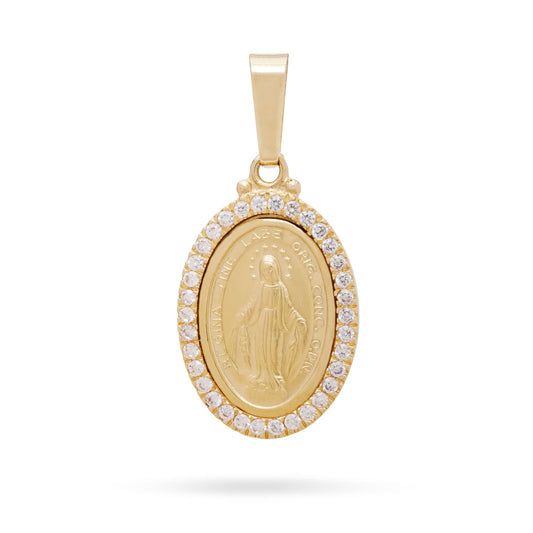 Yellow Gold Miraculous Medal Pendant With Cubic Zirconia Frame