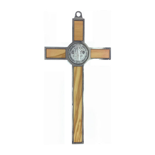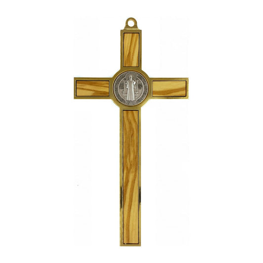 Olive Wood St. Benedict Crucifix with Metal Outline