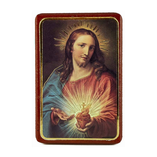 Wooden Painting With Red Frame of Sacred Heart of Jesus