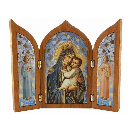 Wooden Triptych with Our Lady of Perpetual Help and Angels