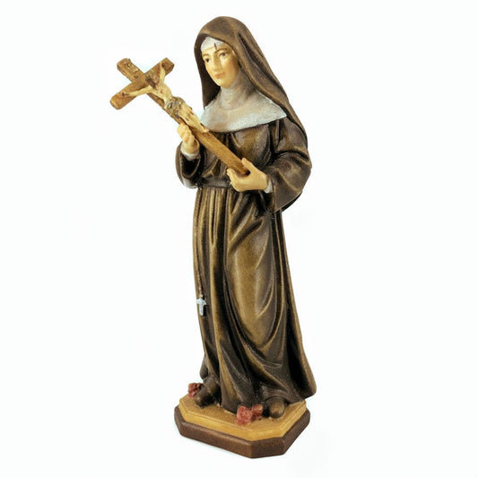 Wooden Statue of St. Rita of Cascia with Crucifix and Crown of Thorns