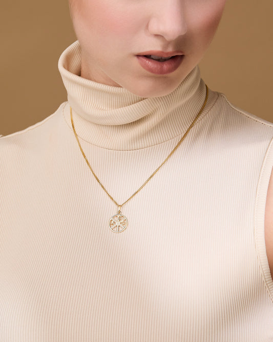 Medaille Friedenskreuz aus Gelbgold mit Zirkonia-Kristallrahmen