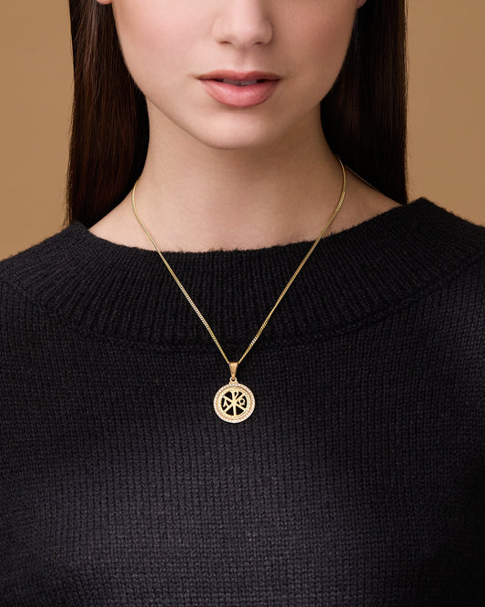 Gelbgold Chi Rho Medaille mit kubischen Zirkonia Details