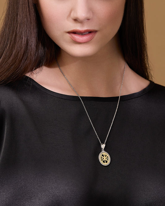 Weißgold Chi Rho Medaille mit kubischen Zirkonia Details