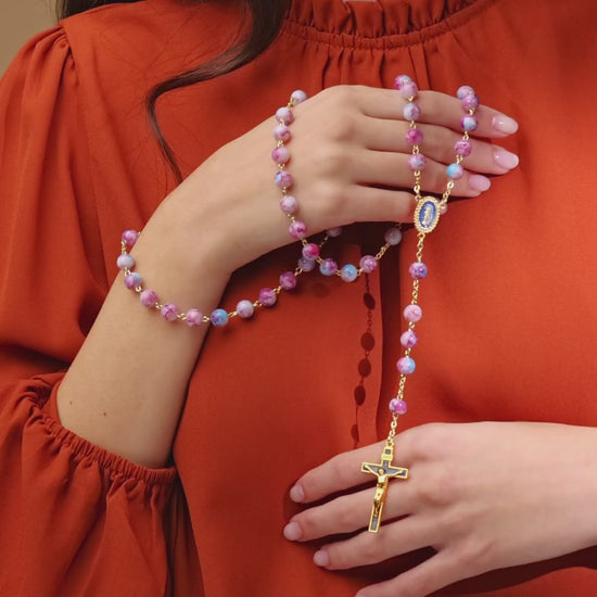 Rosa und blau gefärbter Rosenkranz Unserer Lieben Frau von der wundertätigen Medaille