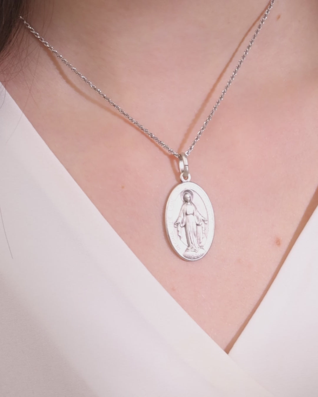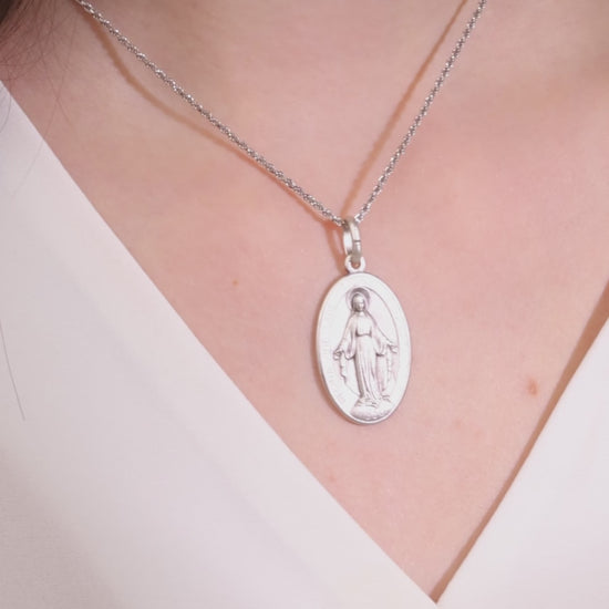 Medaille der wundertätigen Jungfrau Maria aus 925er Sterlingsilber. Wunderschöne Reproduktion der wundertätigen Medaille, die als eine der beliebtesten und am meisten getragenen Medaillen der Welt gilt.