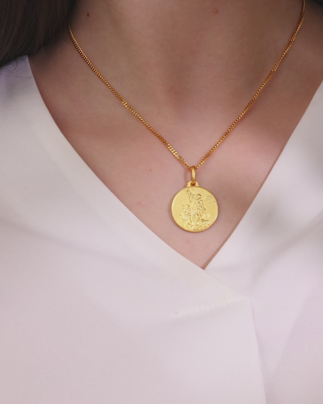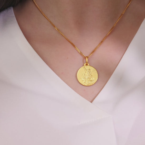 Diese exquisite vergoldete Medaille aus Sterlingsilber zeigt St. Michael, den Erzengel, der für seinen Schutz und seine Stärke in geistigen Kämpfen bekannt ist. St. Michael wird als Schutzpatron der Soldaten, Polizisten und derer, die Schutz vor dem Bösen suchen, verehrt. Die Medaille ist aus hochwertigem Sterlingsilber mit einer luxuriösen Vergoldung gefertigt, die die komplizierten Details der Darstellung von St. Michael hervorhebt. Sie ist ideal für die spirituelle Verehrung und dient als kraftvolles Symbol für Mut und Verteidigung, was sie zu einem sinnvollen und durchdachten Geschenk macht.